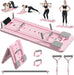 This multi-functional Pilates exercise board is designed for home and personal fitness training. It combines resistance band exercises with bodyweight movements to support full-body workouts including core, arm, leg, and glute training.
